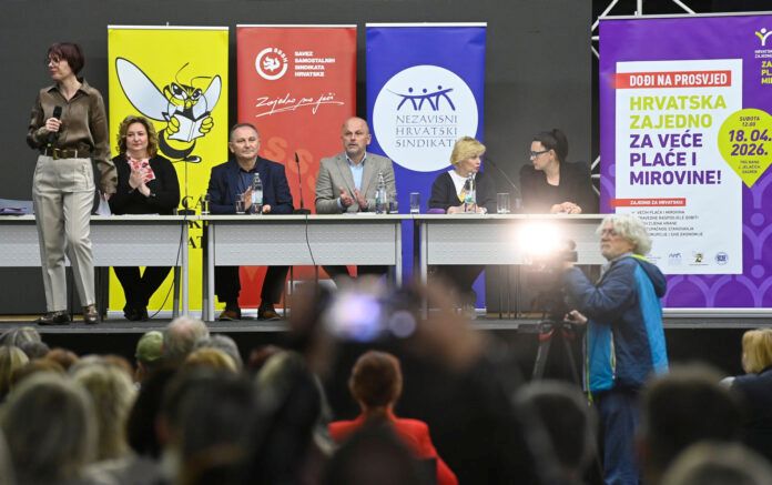 Tri sindikalne centrale u Hrvatskoj – Savez samostalnih sindikata (SSSH), Nezavisni hrvatski sindikati (NHS), Matica hrvatskih sindikata (MHS) i Sindikat penzionera (SUH) – pozvale su na sindikalni protest koji će biti održan 18. aprila u podne na zagrebačkom Trgu bana Jelačića, pod nazivom “Hrvatska zajedno za veće plate i penzije”.